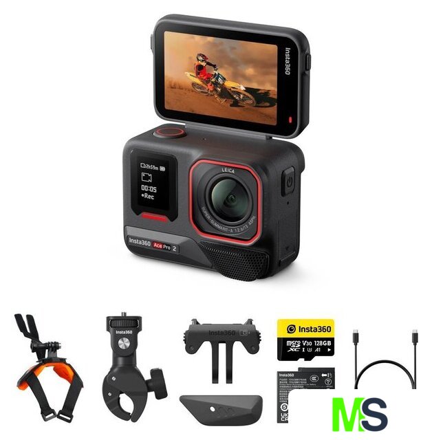 | Комплект поставки | ✅ Содержимое комплекта Motorcycle Bundle:1x Insta360 Ace Pro 21x Ветрозащитный экран (предустановлен по умолчанию)1x Аккумулятор1x Стандартное крепление1x Колпачок для микрофона1x USB-C кабель1x Карта памяти microSD на 128 ГБ1x Крепление для подбородка шлема (Helmet Chin Mount)1x Прочное зажимное крепление (Heavy Duty Clamp) |
