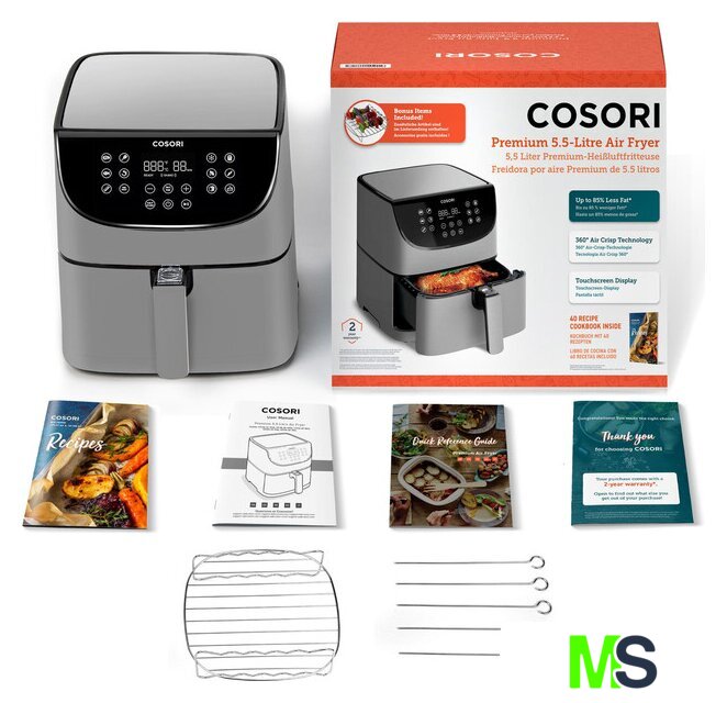 | Комплект поставки | Фритюрница Cosori CP158-AFРешетка для гриляШампуры для шашлыка (5 шт.)Книга рецептов (на английском, немецком, итальянском, испанском, французском языках)Руководство пользователяИнструкция по началу работы |