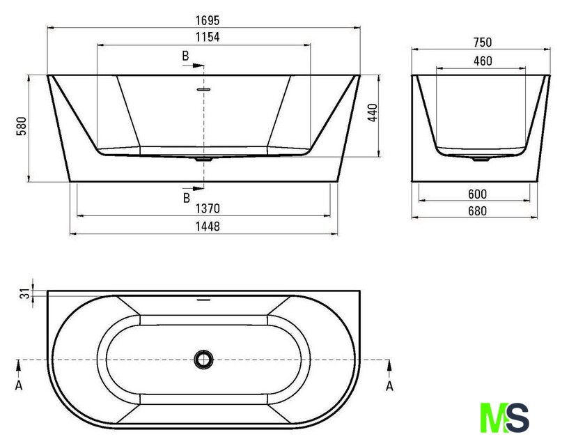 | Глубина ванны | 44 см |