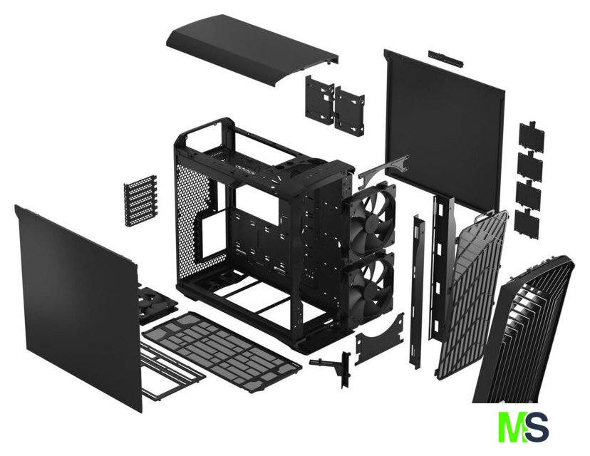 черный, блок питания отсутствует, 3 вентилятора