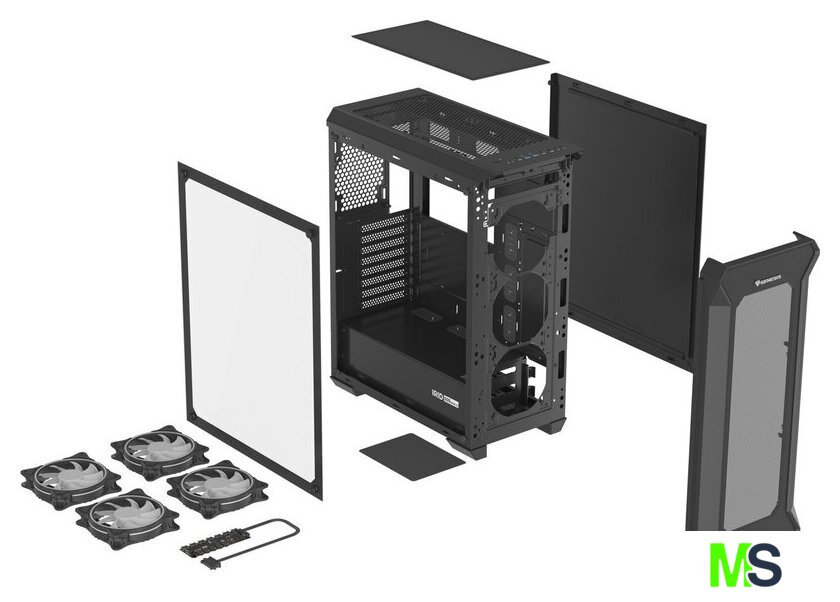 белый, блок питания отсутствует, 4 вентилятора