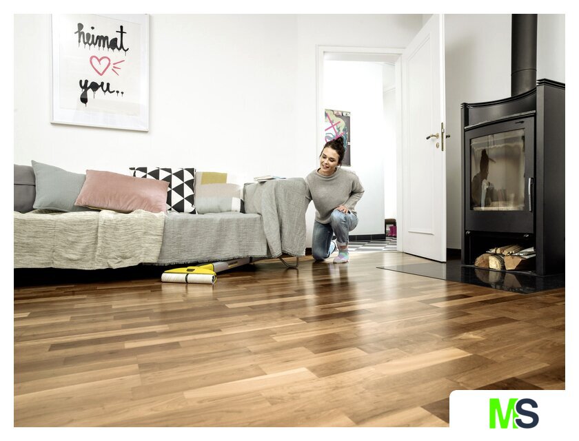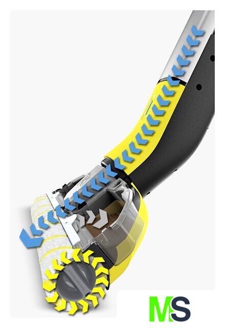 | Комплектация | Система 2 резервуаров2 универсальные роликовые щетки (желтые)Чистящее средство, Универсальное средство для уборки полов RM 536, 30 млПарковочная станция с местом для хранения роликовЗарядное устройство |