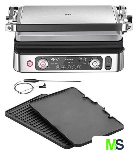 | Комплектация | Электрогриль со съемными нагревательными пластинами: гладкая и ребристая, термометр |