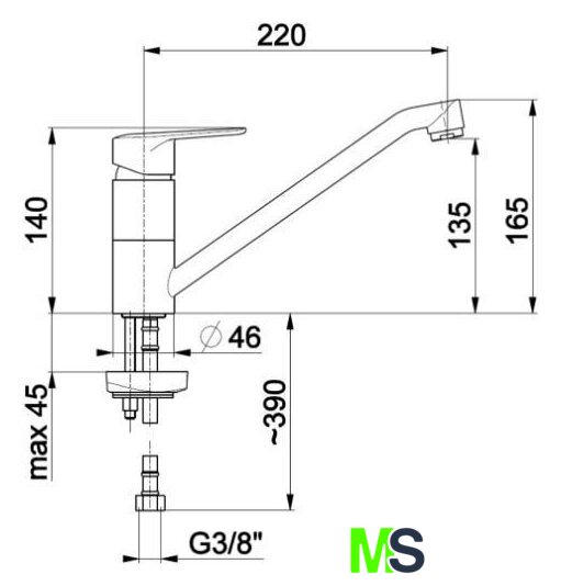 | Длина (вылет) излива | 220 мм |