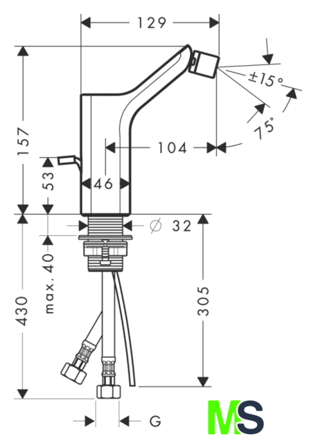 | Длина (вылет) излива | 104 мм |
