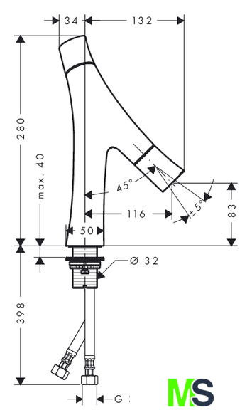 | Высота излива | 83 мм |