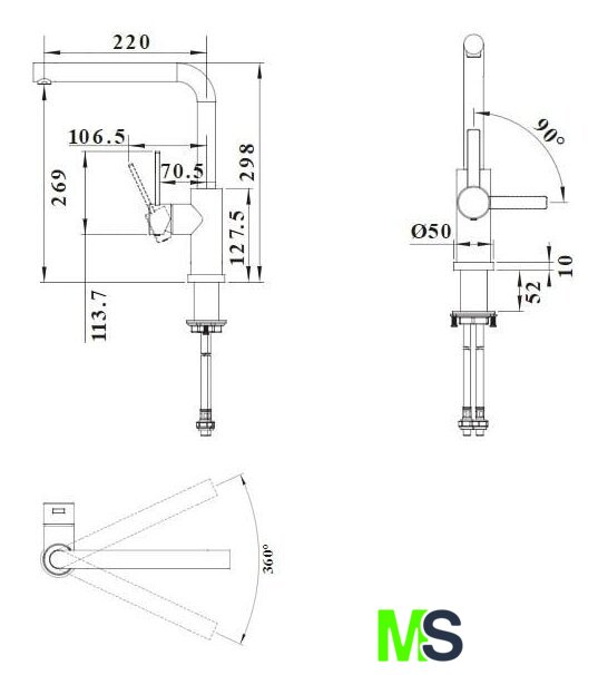 | Поворотный излив | 190 ° |