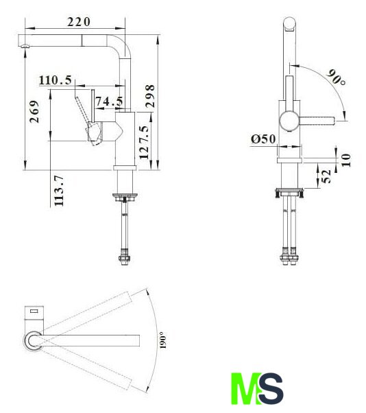 | Поворотный излив | 190 ° |