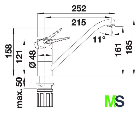 | Длина (вылет) излива | 215 мм |