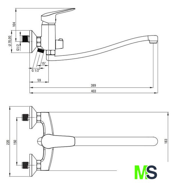 | Длина (вылет) излива | 389 мм |
