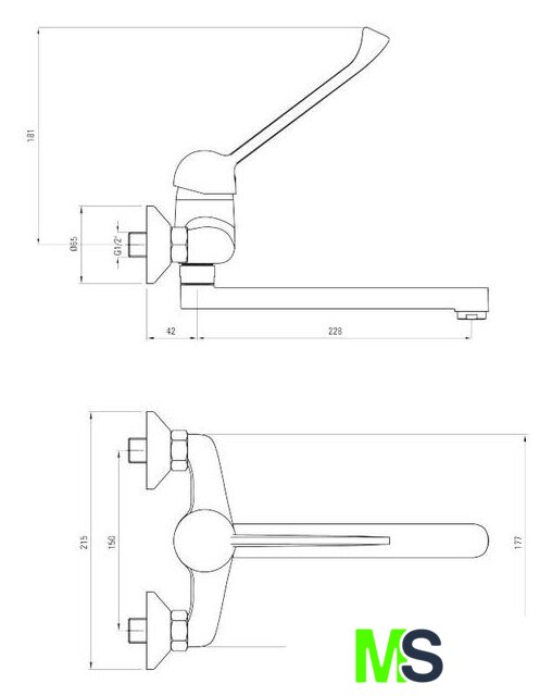 Длина (вылет) излива | 228 мм |