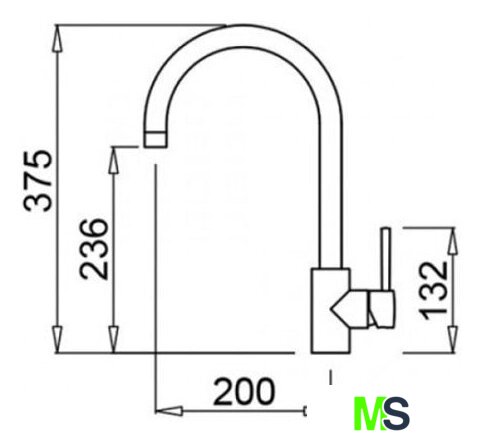 Длина (вылет) излива 200 мм