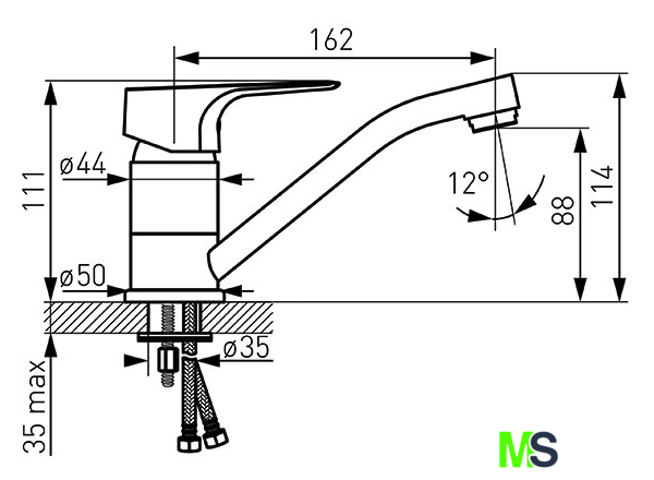 | Длина (вылет) излива | 162 мм |