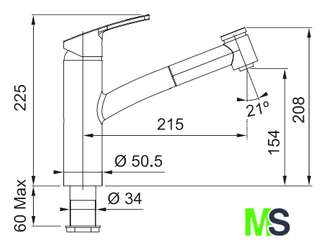 | Длина (вылет) излива | 215 мм |
