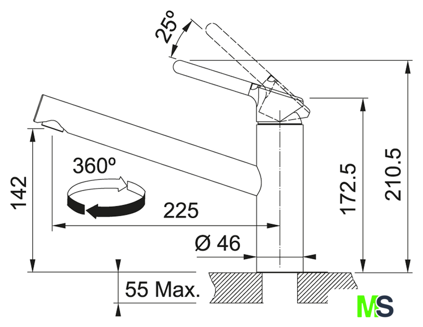 | Поворотный излив | 360 ° |