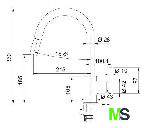 | Длина (вылет) излива | 215 мм |