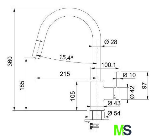 | Длина (вылет) излива | 215 мм |