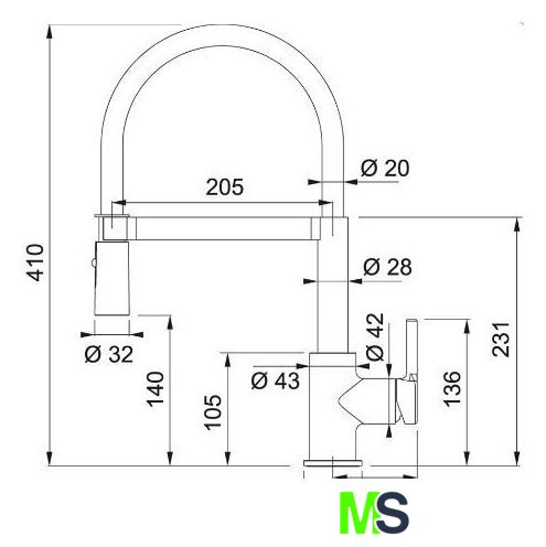 | Длина (вылет) излива | 205 мм |