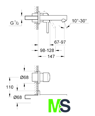 | Длина (вылет) излива | 147 мм |