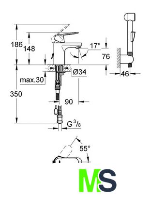 | Длина (вылет) излива | 90 мм |