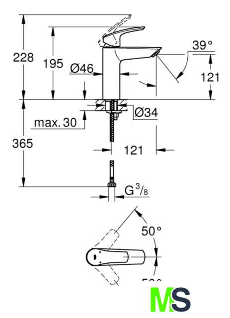 | Длина (вылет) излива | 121 мм |