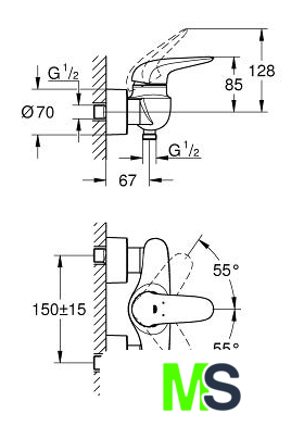 | Длина (вылет) излива | 67 мм |