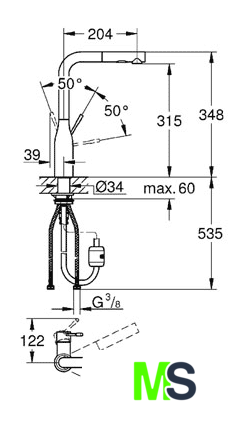 | Высота излива | 315 мм |