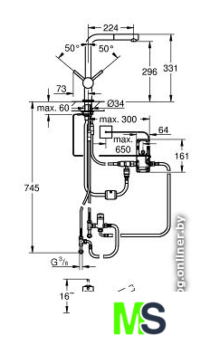 | Высота излива | 296 мм |