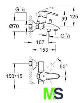 | Длина (вылет) излива | 153 мм |