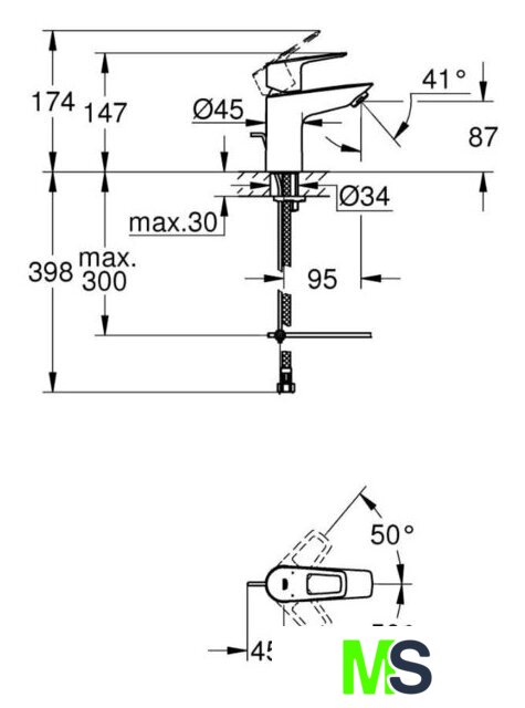 | Длина (вылет) излива | 95 мм |
