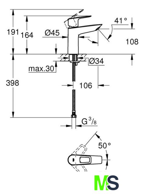 | Длина (вылет) излива | 106 мм |