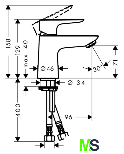 | Длина (вылет) излива | 96 мм |