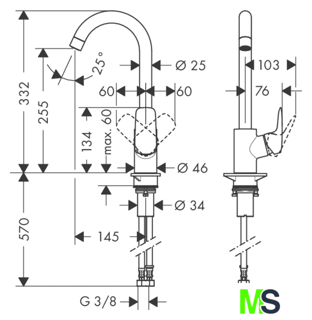 | Поворотный излив | 360 ° (либо 110/150°) |