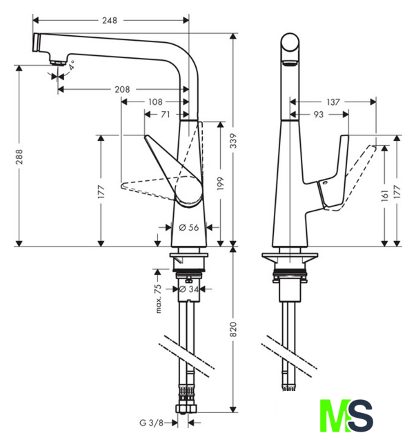| Высота излива | 288 мм |