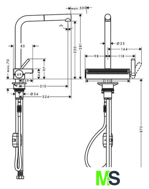 | Выдвижной/гибкий излив | с аэратором |