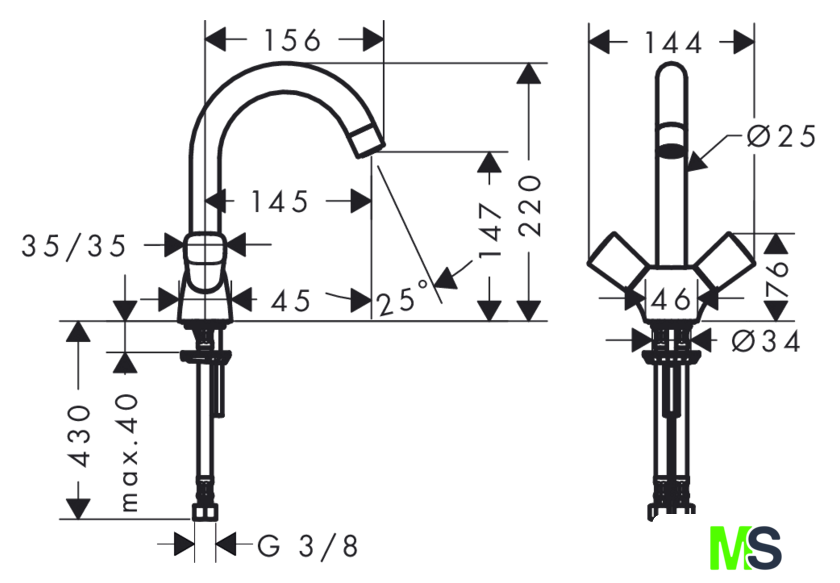 | Поворотный излив | 120 ° |