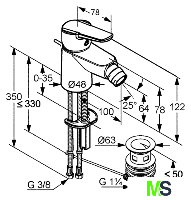 | Высота излива | 64 мм |