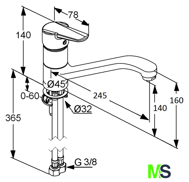 | Длина (вылет) излива | 245 мм |