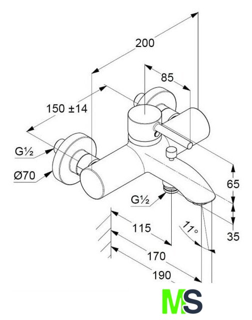 | Длина (вылет) излива | 170 мм |