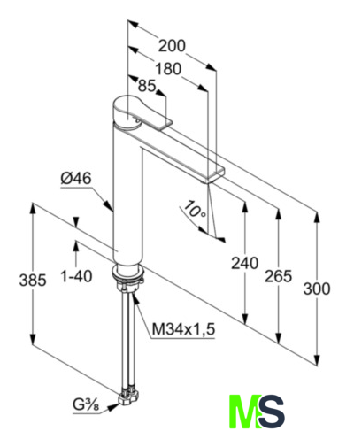 | Длина (вылет) излива | 180 мм |