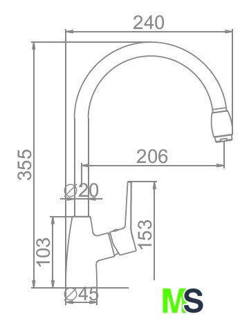 Длина (вылет) излива | 206 мм |