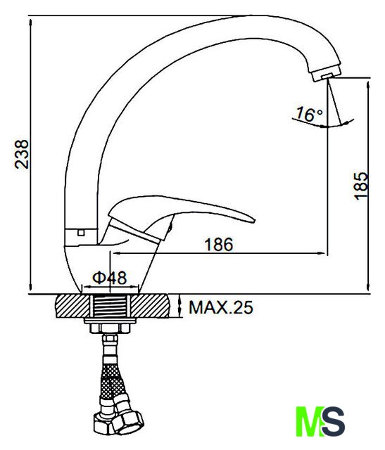 | Длина (вылет) излива | 186 мм |