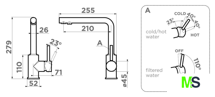 | Длина (вылет) излива | 210 мм |
