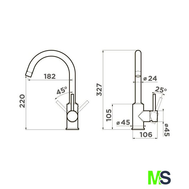 | Длина (вылет) излива | 182 мм |
