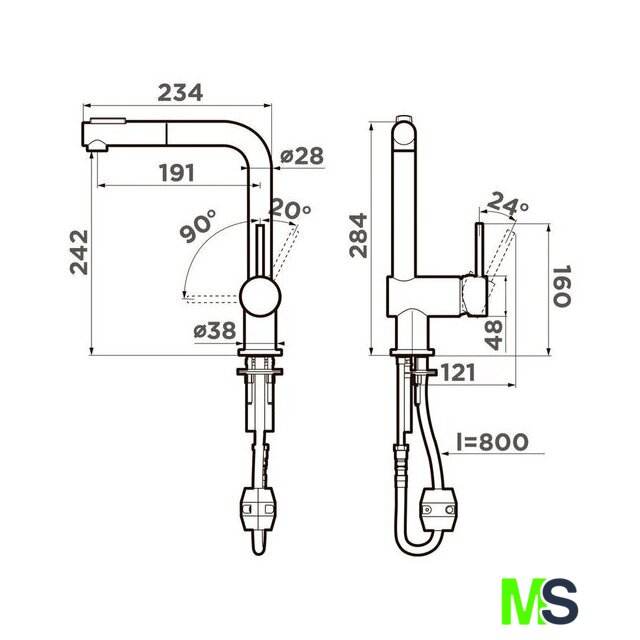 | Длина (вылет) излива | 191 мм |