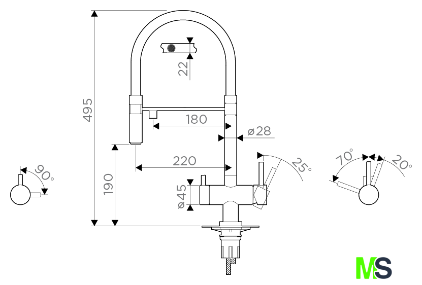 | Длина (вылет) излива | 220 мм |
