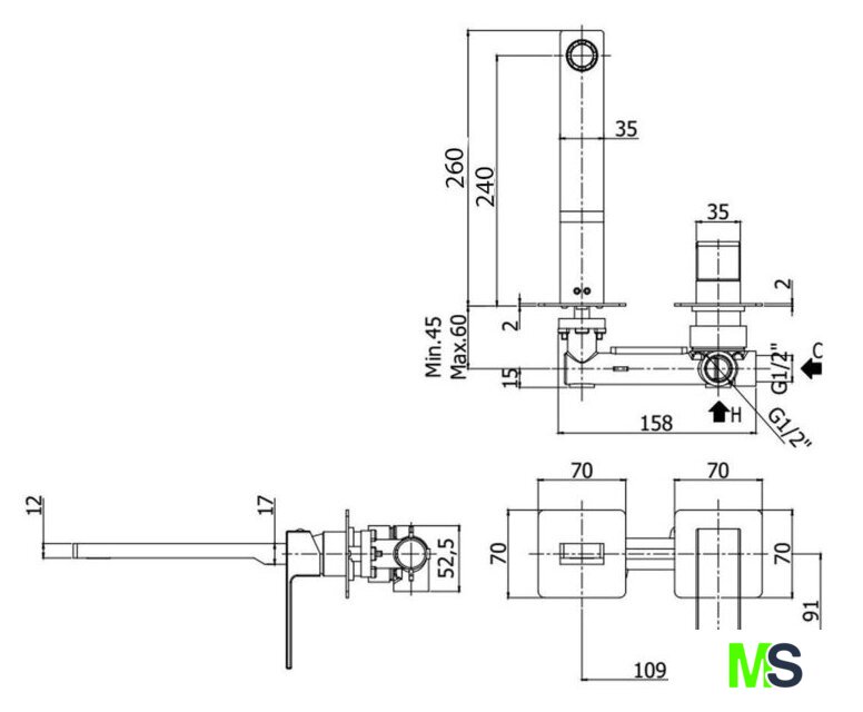 | Длина (вылет) излива | 240 мм |