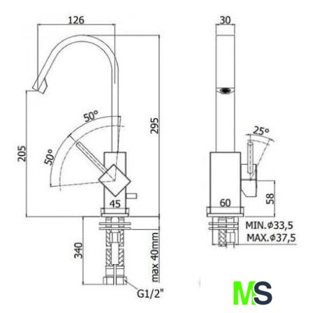 | Высота излива | 205 мм |