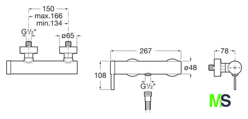 смеситель, монтаж на стену
