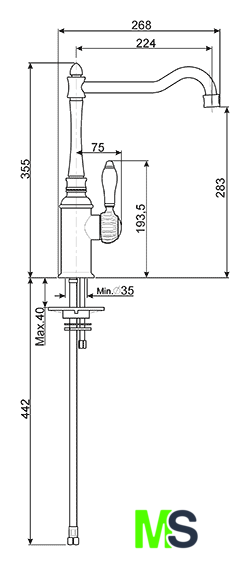 | Длина (вылет) излива | 224 мм |